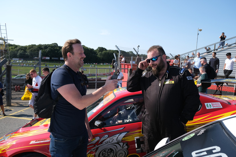 We only chatted to Andy - and Julian from Garage-D (who gets coolest helmet award with his carbon Simpson!) - for a few moments in the pits before the drift cars fired up and headed to the track. After that, conversation was not possible due to high levels of brap-brap-brap! Awesome!