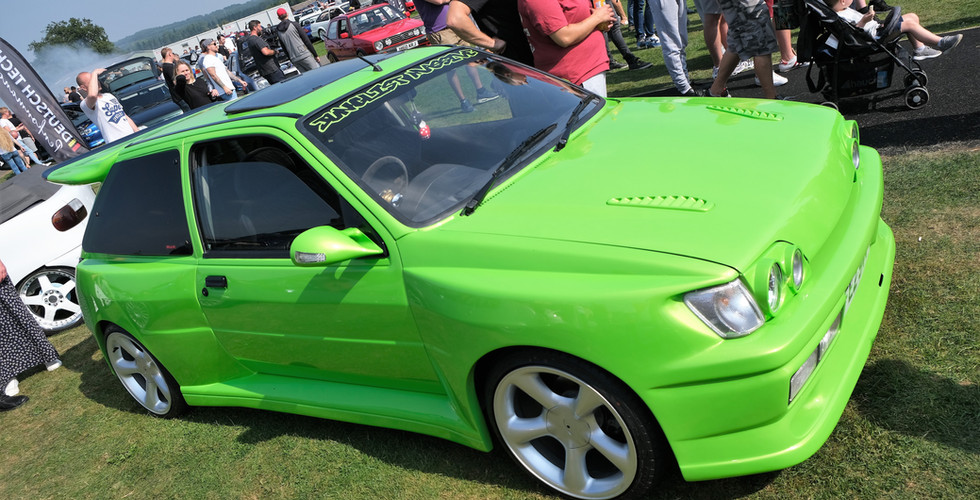 This is a proper throwback. The build started from a £350 Fiesta and turned into this widearched, whaletailed Ultimate Green beauty. It looked right at home next to some of the famous old builds.